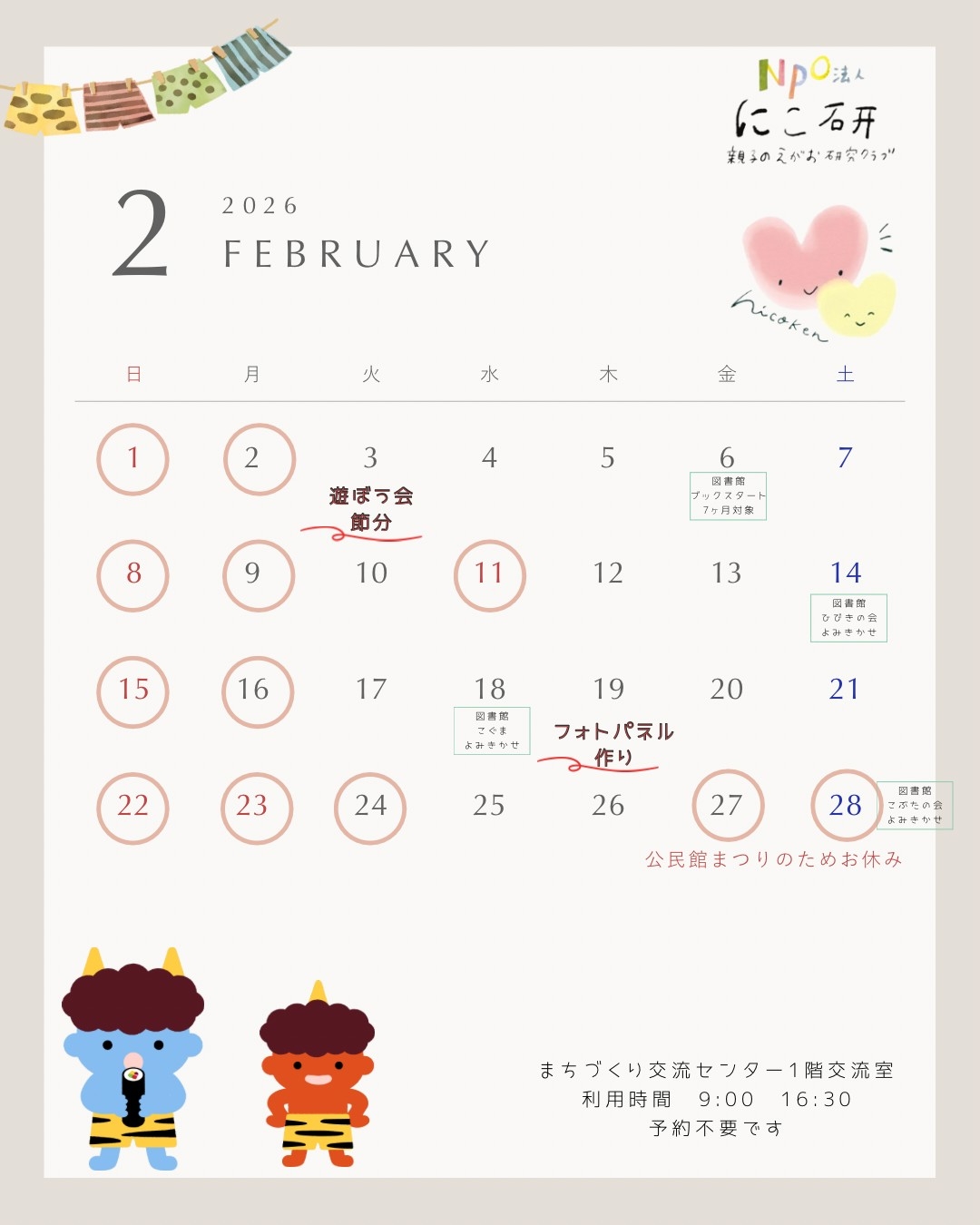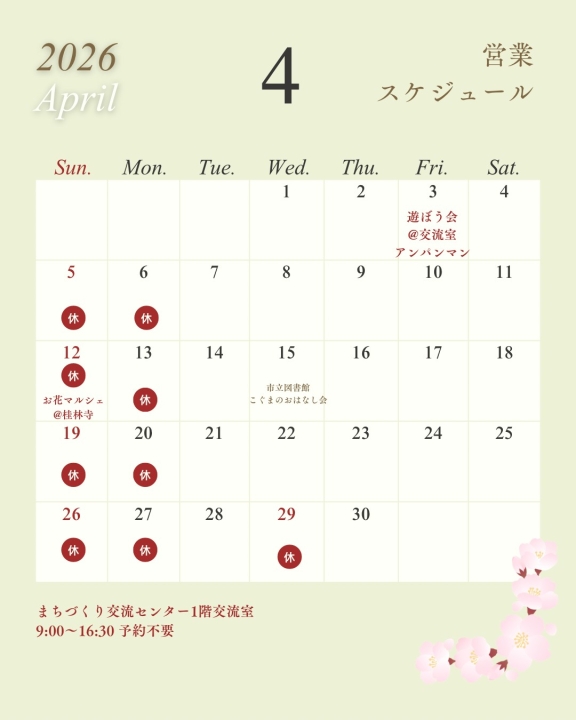 休館日はこのページのカレンダーでご確認いただけます