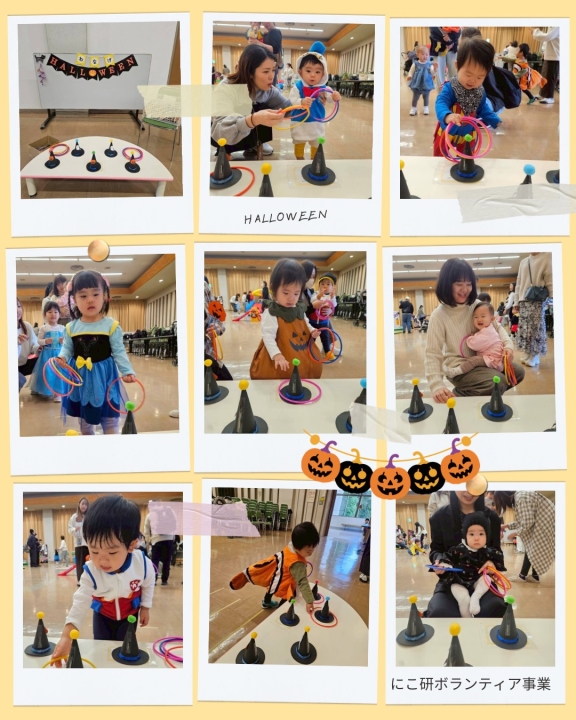 ハロウィンの輪投げでお菓子をもらったり、